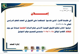 انطلاقًا من شرف الانتماء إلى عراقنا العزيز، أرض الأنبياء والأولياء، ومهد الحضارات الإنسانية الأولى أقام معهدنا احتفالاً باليوم الوطني لجمهورية العراق ، في الثالث من تشرين الاول لعام 1932 الذي شهد انضمام العراق إلى عصبة الأمم، ليكون الدولة السابعة والخمسين المعترف بها رسمياً بين دول العالم… حيث شهدت الفعالية مشاركة موظفي وطلبة المعهد ورفع العلم العراقي وسط ارتفاع النشيد الوطني ...