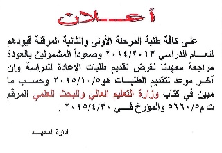 ..اعلان ...اعلان ...يعلن معهدنا عن توزيع براءات الذمة لخريجي 2024/2025 واستلام مخصصاتهم المالية ..