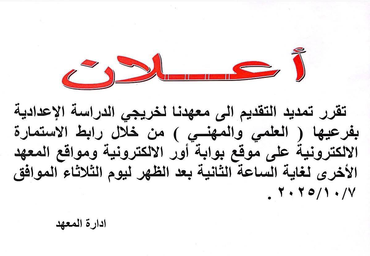....اعلان تمديدالتقديم على المعهد لخريجي الدراسة الاعدادية ..