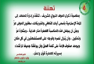 انطلاقًا من شرف الانتماء إلى عراقنا العزيز، أرض الأنبياء والأولياء، ومهد الحضارات الإنسانية الأولى أقام معهدنا احتفالاً باليوم الوطني لجمهورية العراق ، في الثالث من تشرين الاول لعام 1932 الذي شهد انضمام العراق إلى عصبة الأمم، ليكون الدولة السابعة والخمسين المعترف بها رسمياً بين دول العالم… حيث شهدت الفعالية مشاركة موظفي وطلبة المعهد ورفع العلم العراقي وسط ارتفاع النشيد الوطني ...