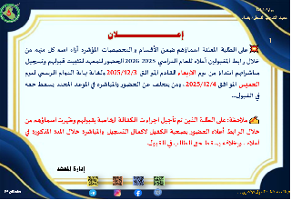 اعلان .اعلان الى الطلبة المرقنة قيودهم للعام 20132014 وصعودا بالعودة وحسب كتاب وزاة التعليم العالي والبحث العلمي المرقم ت م 55660 في 3042025 . ...