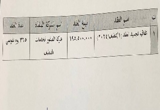 اتفاقية تجديد عقد رقم 1/2025 تنظيف لشركة الصقور مبمبلغ 195.500.000