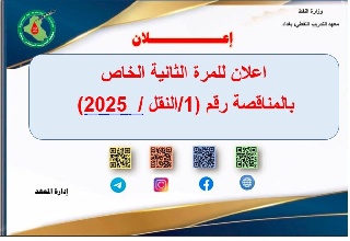 ...اعلان ...اعلان ....يعلن معهد التدريب النفطي بغداد عن المناقصة رقم 1 لعام 2025 /لنقل منتسبي المعهد